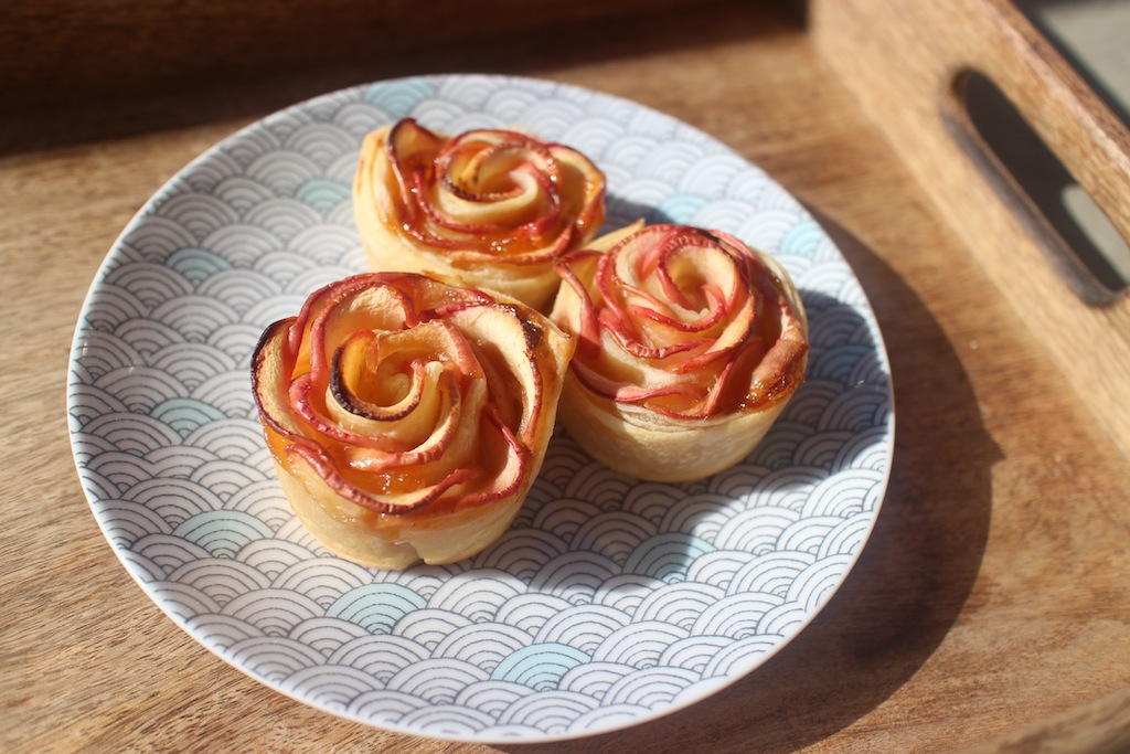 Les apple roses, ce n’est pas nouveau et je dirais même qu’elles sont passées de mode depuis un petit moment. Mais, elles sont toujours aussi jolies et j’avais envie d’essayer. Enfin, de réessayer car un premier test avec de la pâte brisée ne m’avait pas convaincue. Cette fois, je suis assez satisfaite du résultat.
