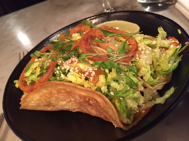 Ma moitié a choisi les tacos poulet cacahuètes et je pense qu’il ne s’est pas trompé. Visuellement, ça en jette et c’était plutôt pas mal. Peut-être la prochaine fois que j’y retourne…Car, c’est certain : il y aura une prochaine fois.