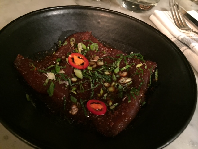 C’est frais, léger. Le thon mariné est un peu épicé mais délicieux. Le yellow tail en ceviche est fruité, un peu sucré mais avec une touche d’acidité.