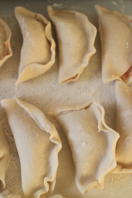 Presser des deux côtés en humidifiant le bout de doigts avec un peu d’eau, afin que les bords soient fermés et collés.