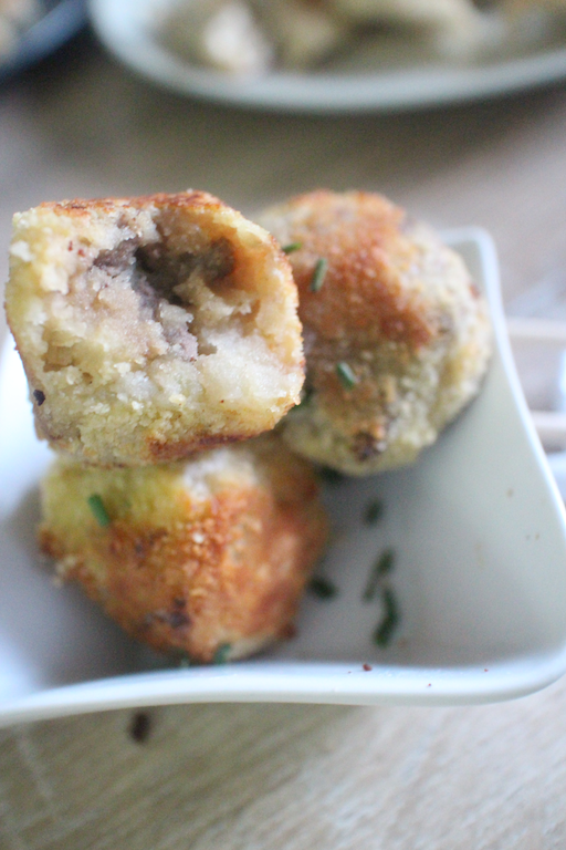 Les boulettes sont assez grosses et assez copieuses. Je les ai servies en entrée, à raison de deux par personne. C’est suffisant pour se mettre en appétit sans se caler…