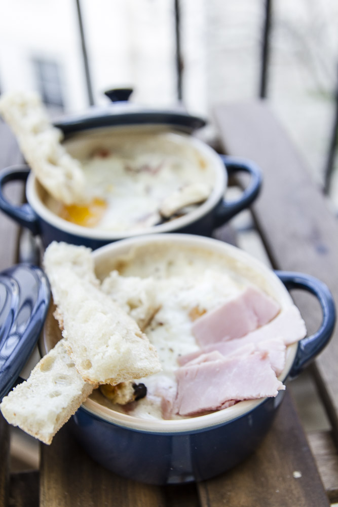 J’ai toujours voulu faire une recette dans ces petites choses. Oui, mais laquelle ? Alors pour couper court, j’ai décidé d’aller au plus simple, à l’essentiel, bref de faire un classique : des œufs en cocotte jambon, champignons de Paris et bien sûr, des mouillettes !